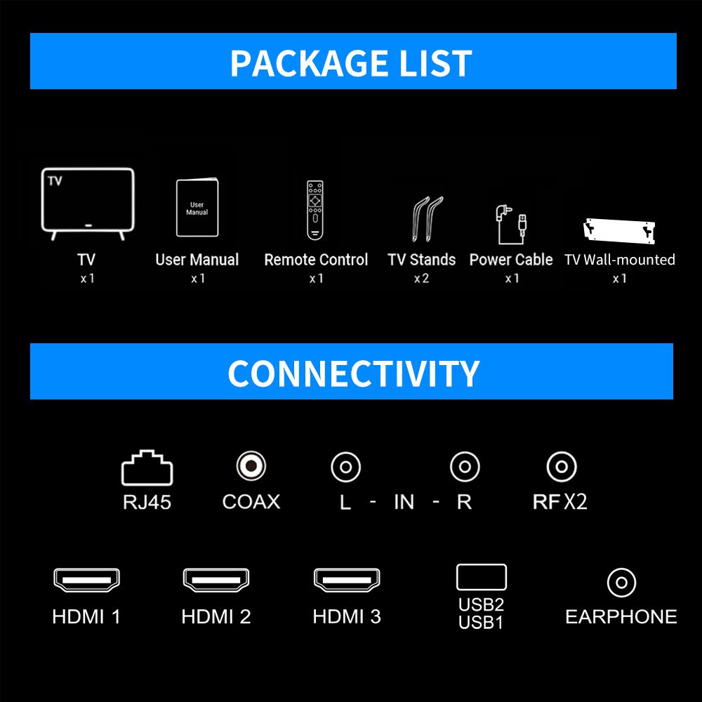 HIKERS SMART LED TVA New Generation LED TV Brand Exclusively On rehmie By International LED TV Manufacturer & Haier After-sales Service.Eyes ProtectionQuality Pictures By A Class 4K Screen Comfort Your Eyes. Dream With HIKERSTo relax in bedroom with the sunshine. Dream your dream with HIKERS. Love Your LoveHouse has the boundary however love is endless. Parents are happy for happy kids.Get closer with your family by one unit HIKERS LED TV. A Class PanelResolution: 1366x768 Brightness:180cd/㎡ HDMI USB GAME It can be used as a computer monitor by HDMI.USB-plug in U disk to play video. AV interface-connect game console. Hifi-in-it Sound EffectQuality stereo bring you romantic surprise during watching movies or American dramas. Energy SavingStandby power is less than 0.5w by technically reducing backlight and the auto realizing of energy saving set.