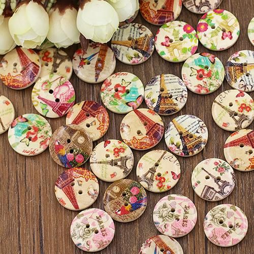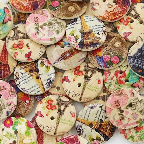 Features: Eiffel Tower, Flower, 2 Holes, Round Shape