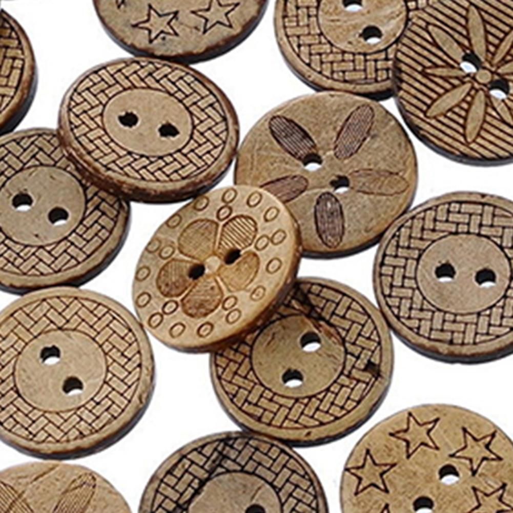 These mixed buttons are depicted by flower, star, dots, stripes along with coconut shell. The round shape, 2 holes finish them, delicate and useful. Great for apparel, clothing, home textiles, DIY scrapbooking, etc.