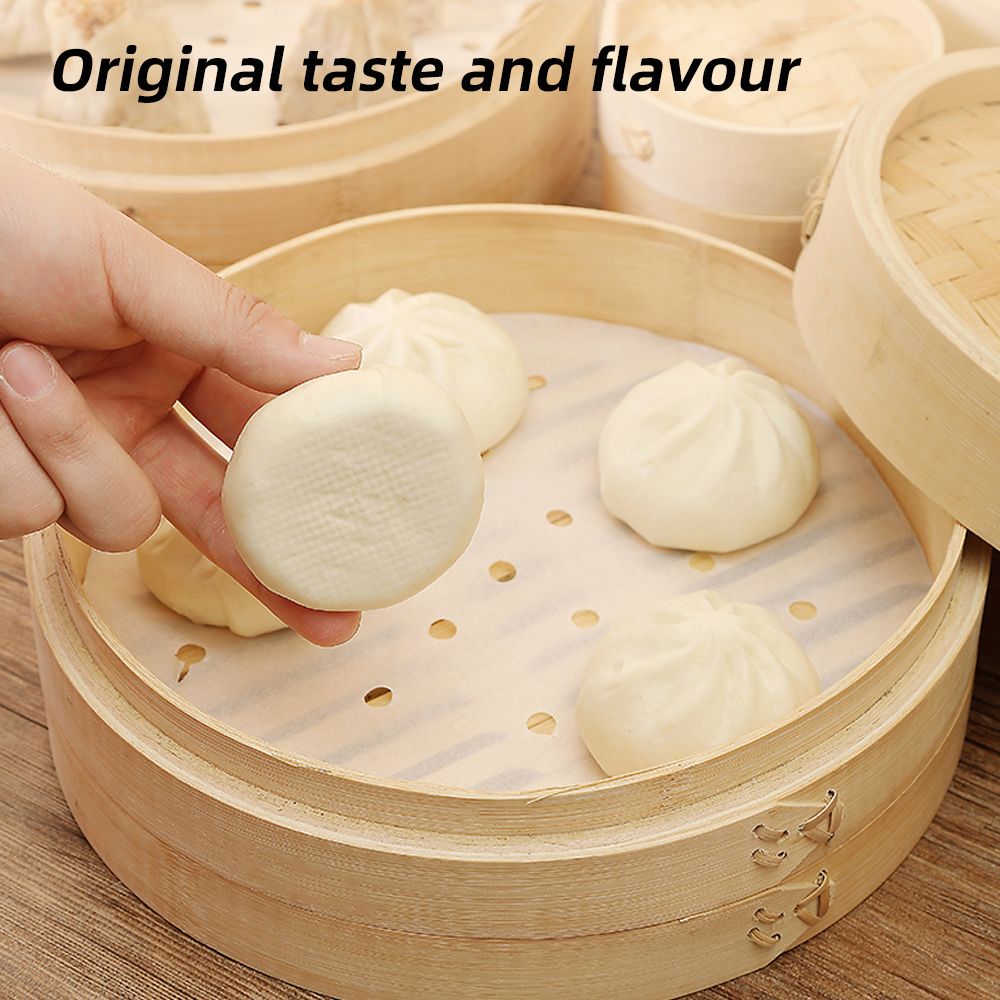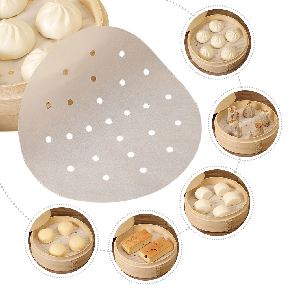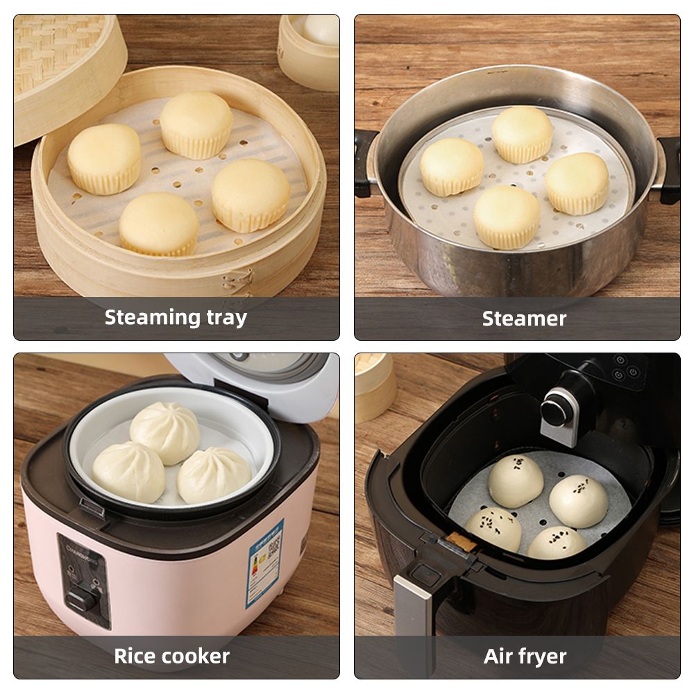 【UNIFORM AIR HOLE DESIGN】There are many small holes on the steam paper, the purpose is to allow the steam to heat the steamed buns better, and at the same time, the small holes also make it\'s easier to remove the steam paper.