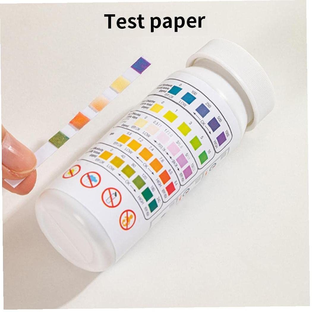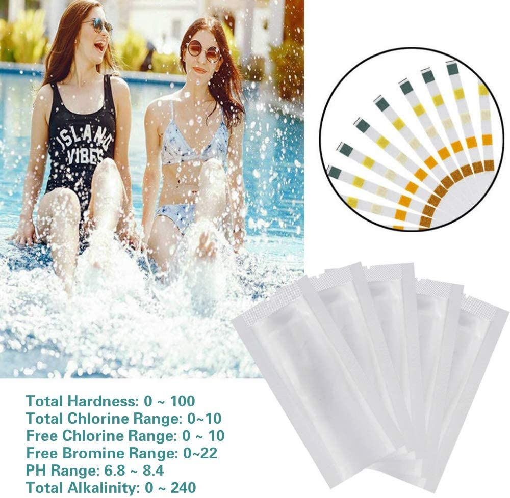 5. Test Range:Total hardne: 0 -100, Total chlorine range: 0-10, Free chlorine range: 0-10, Free bromine range: 0-22, PH range: 6.8-8.4, Total alkalinity: 0-240.