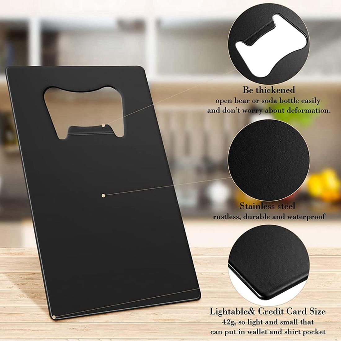 Detailed Information About The Product:Sturdy and Reliable: the credit card size bottle openers are made of quality stainless steel, not easy to rust or corrode, not easy to break or deform, reusable and solid, which can bring you a nice use experience with confidence.