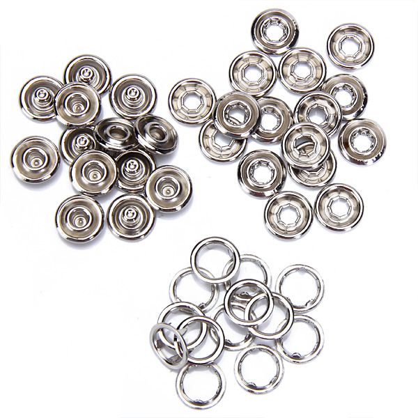 Each set consists of 4 parts - 1 female socket, 1 male stud and 2 open prong rings
