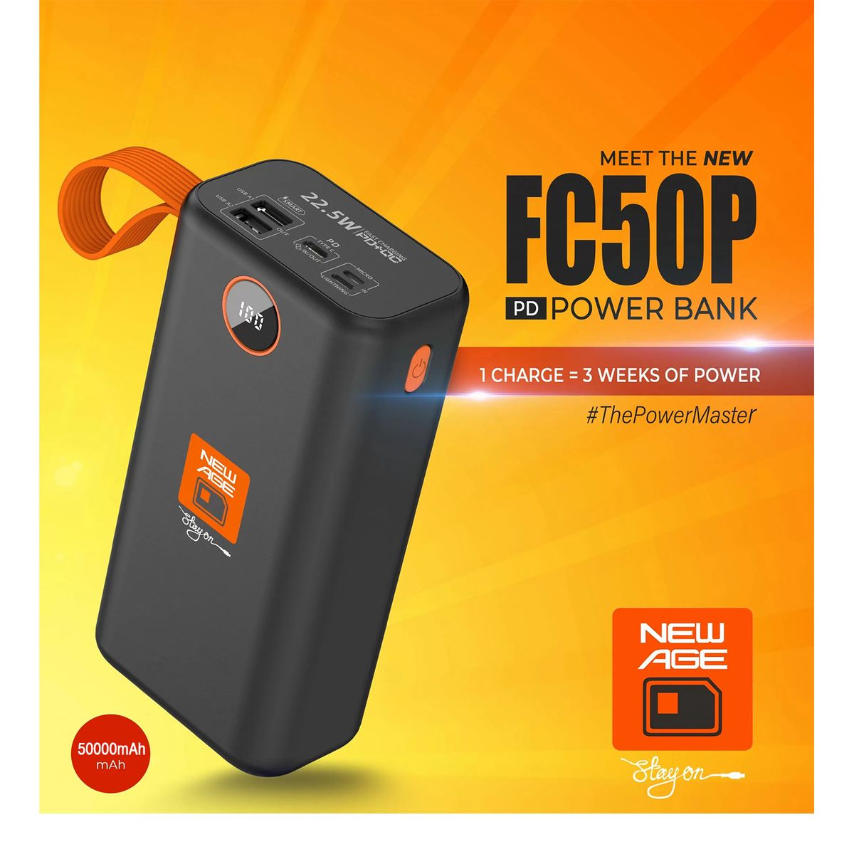 Powerful Cell Capacity: New Age FC50P 50000P Power Bank provides almost 16 iPhone 11 charges, 13 Samsung Galaxy S21 charges, 10 Tecno Phantom X charges or multiple charges for almost all tablets and other USB devices.