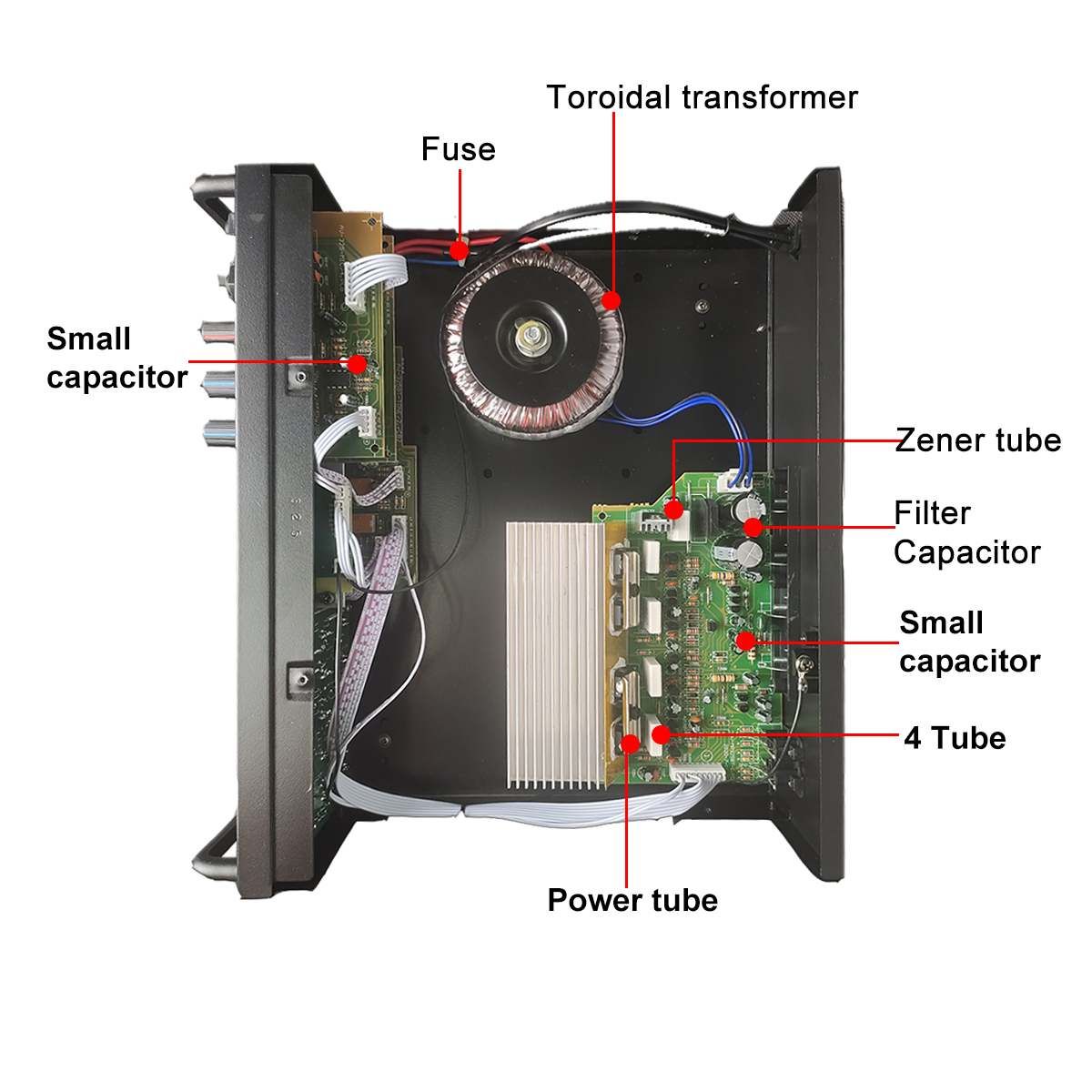 - with 4 microphone inputs, with microphone reverb and delay adjustment
