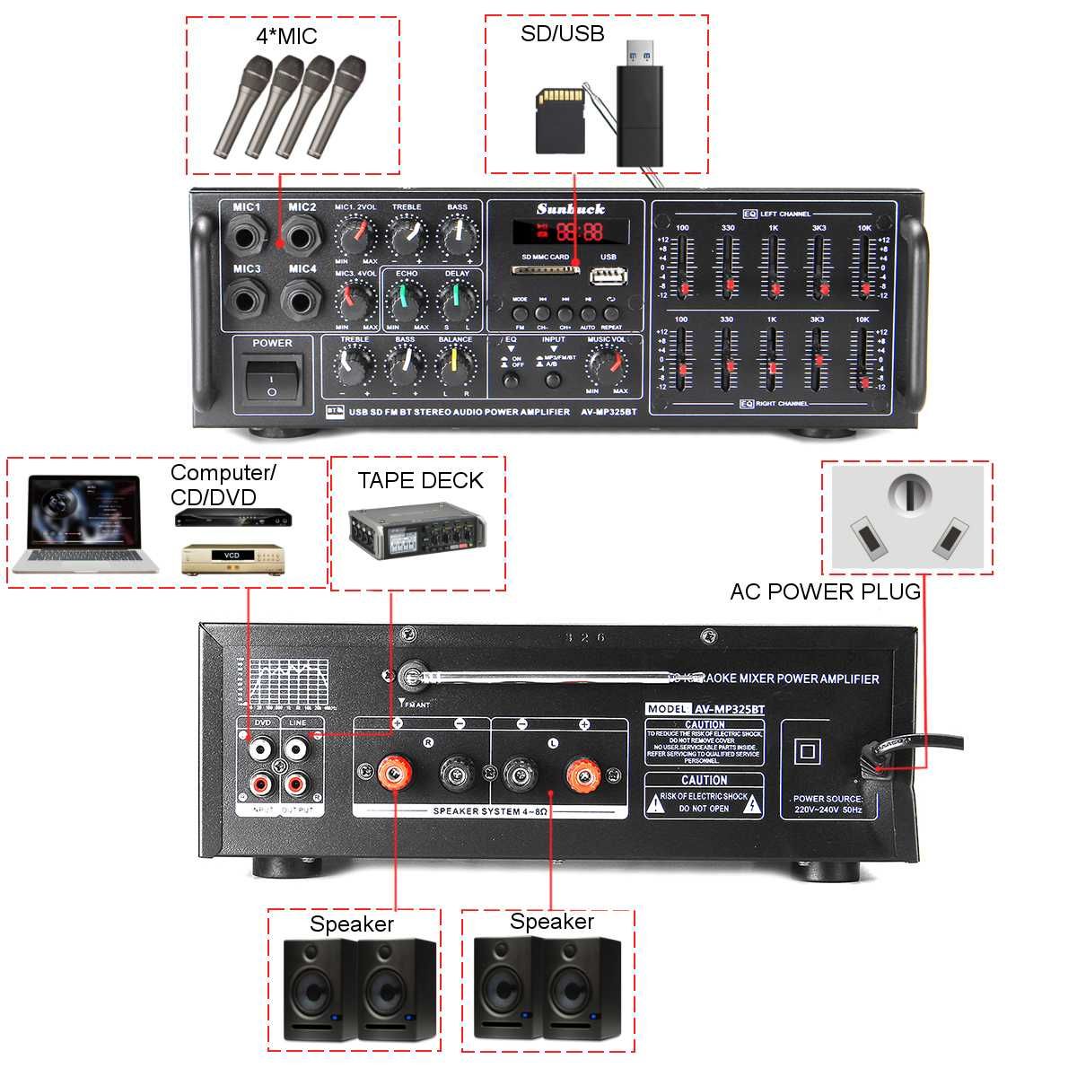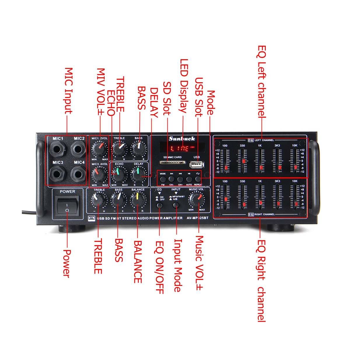 1X SUNBUCK 5000W 110-240V bluetooth Power Amplifier System Sound Audio Stereo Receiver Support 4 Way Microphone 2 Channel AMP FM SD