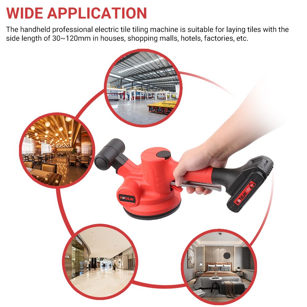 [Wide Application] The handheld professional electric tile tiling machine is suitable for laying tiles with the side length of 30~120mm in houses, shopping malls, hotels, factories, etc.