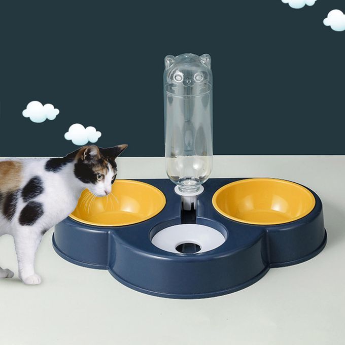 Automatic drinking water for cats and dogs, double bowl feeding tableware, staple food/snacks are eaten separately, PP material has no peculiar smell