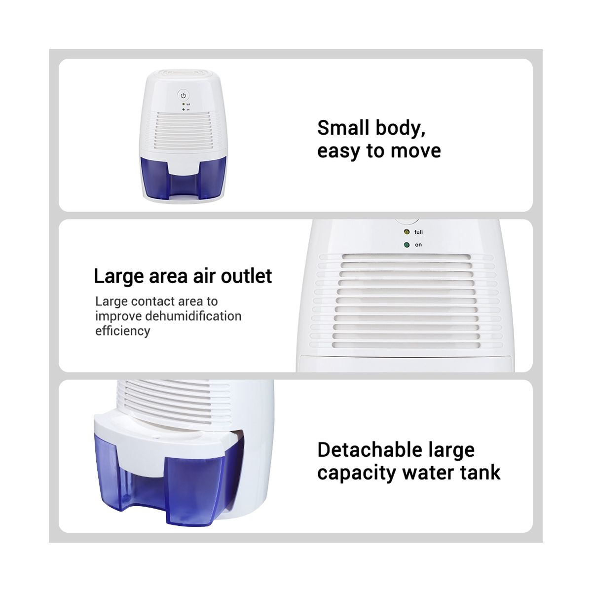 Detailed Information About The Product:1.Portable des can quickly dehumidify, effectively prevent odor, mildew and bacteria growth caused by excessive humidity, giving you a more comfortable living environment.