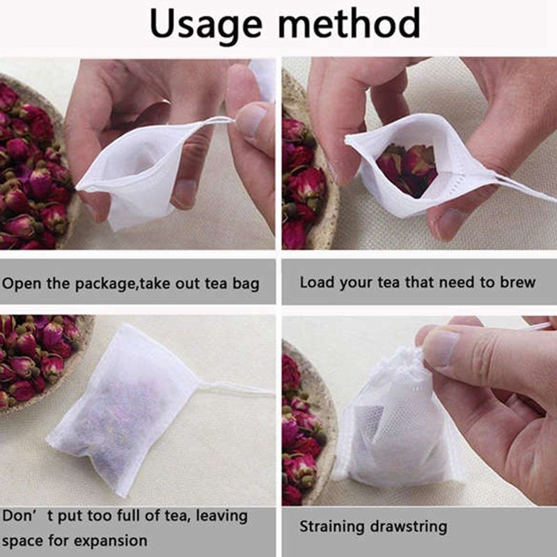Tea bags are easy to fill and remove and can be used once. Designed with drawstrings, they are safe, leakproof, and durable.
