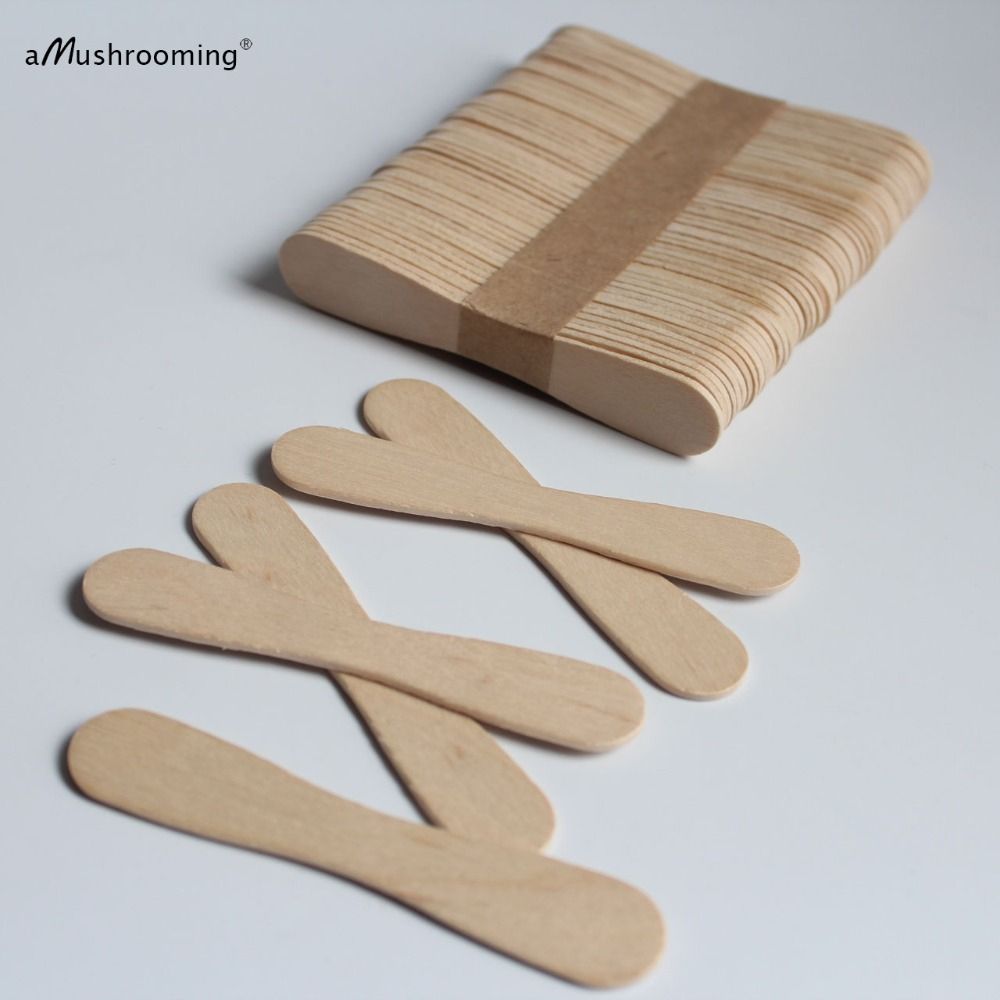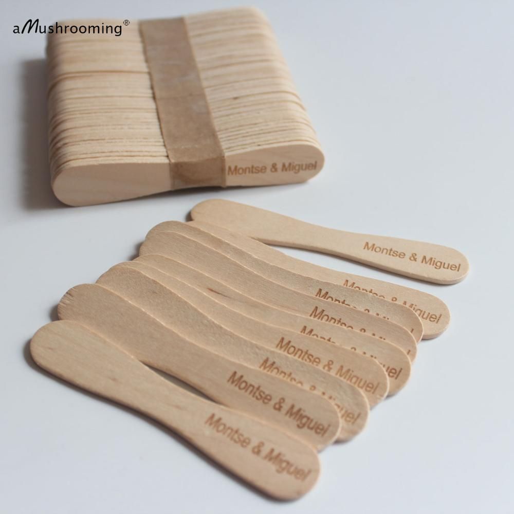 1X 50/100 Plain Personalized Flat Ice Cream Scoops Birchwood Dessert Spoons Personalized Popsicle Sticks Icecream Party Disposable