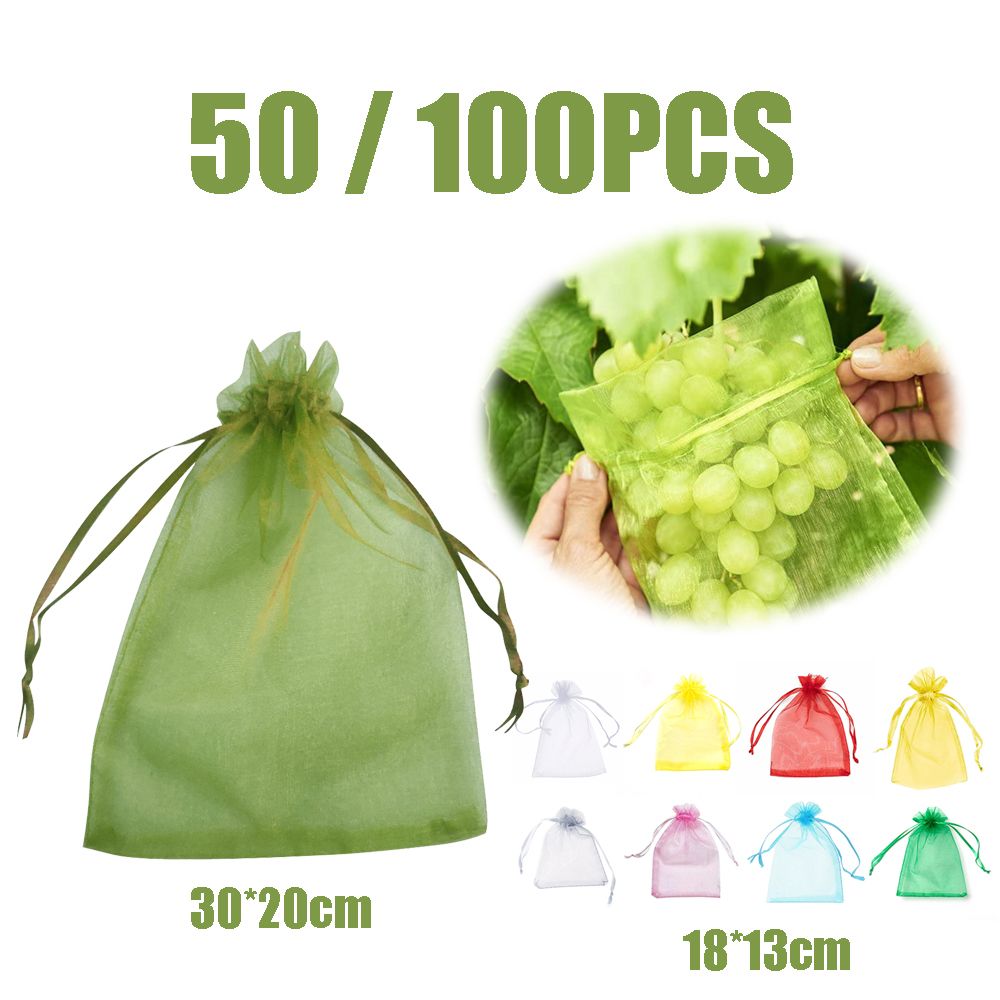 1X 50/100pcs Garden Drawstring Netting Bags Fruit Vegetable Grapes Mesh Bag Against Insect Waterproof Pest Control Anti-Bird