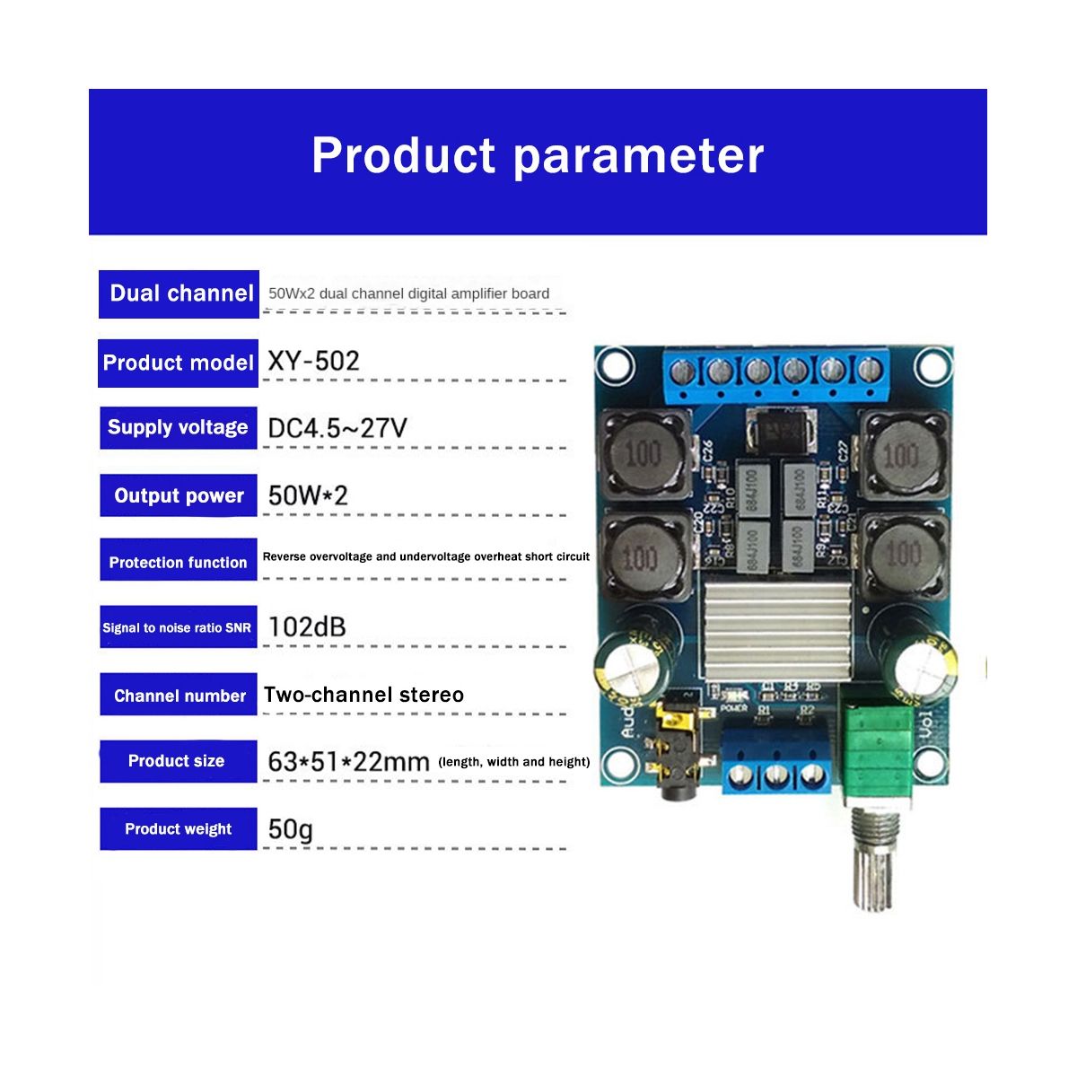 Product name 50W * 2 dual-channel digital power amplifier board
