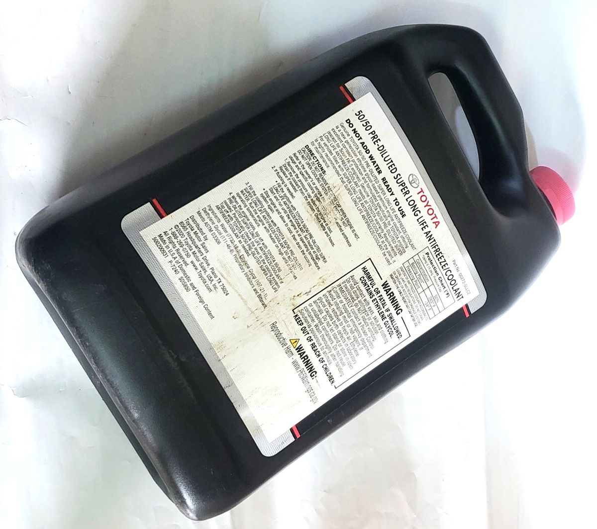Genuine Toyota 50/50 Pre-Diluted Super Long Life Anti-Freeze/Coolant is a new generation Ethylene Glycol-based premium engine coolant, offering excellent corrosive protection and formulated specifically for engines (Except Scion FR-5 Engine)