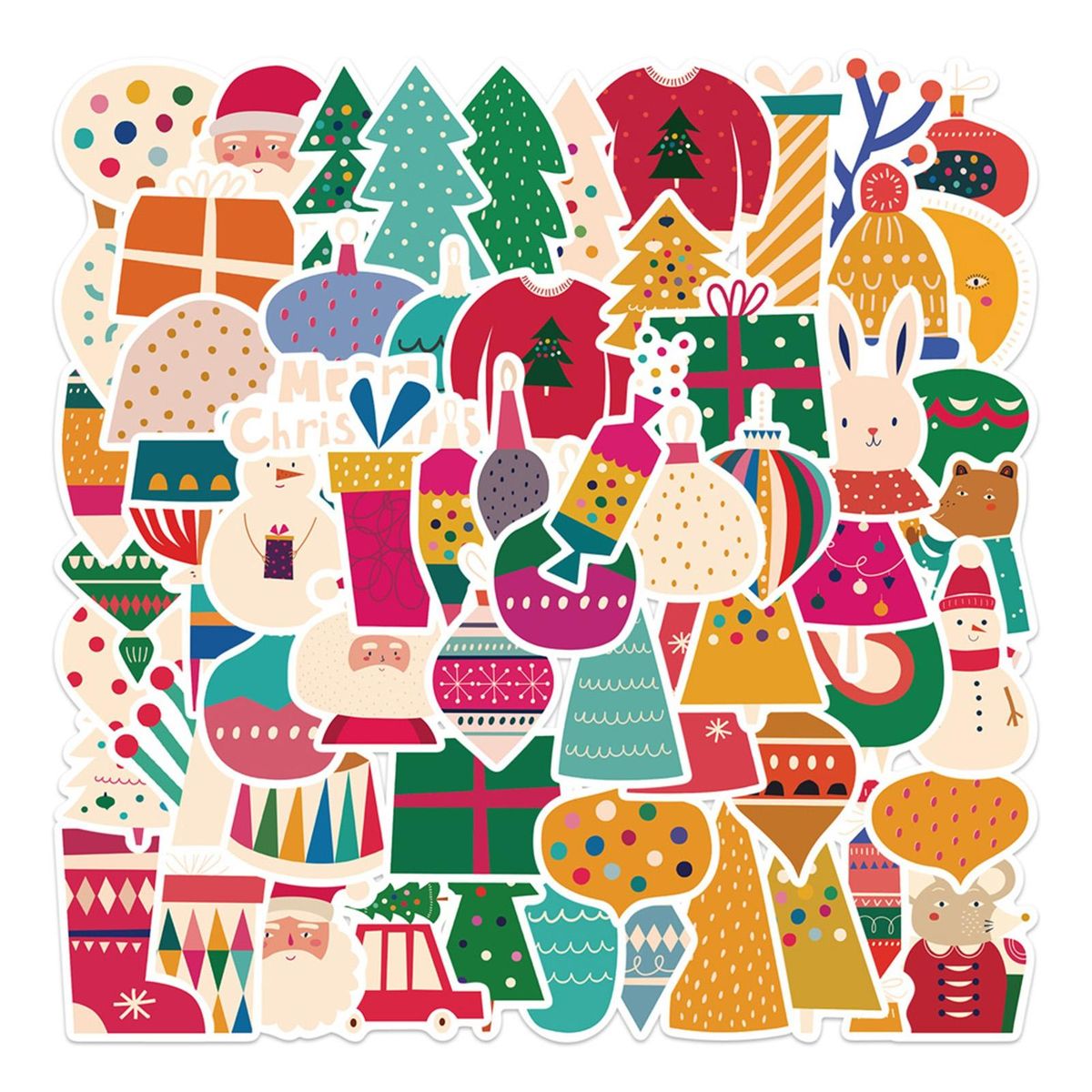 Package Includes:Santa Claus: 1 Set of Christmas Stickers (50Pcs Stickers Included)