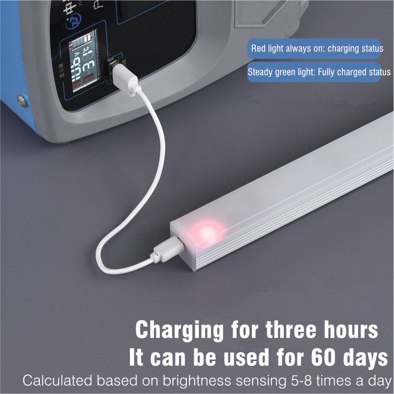 2. Funktion: Das Licht funktioniert automatisch, wenn Sie den Erfassungsbereich in der Dunkelheit betreten. Das Licht enthalt die Lithiumbatterie oder Sie konnen es mit einem USB-Kabel aufladen, bequeme Installation.