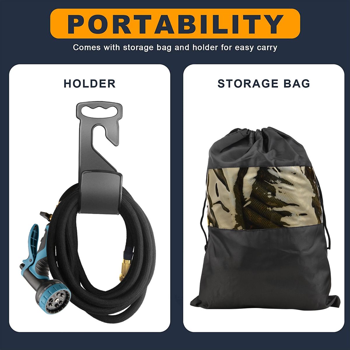 Easy To Use And Store: Retractable, lightweight, highly portable, flexible hose, simple way to save your storage space. Just drain water from the hose when not in use, store it out of the direct sun. Plus, you also have a water hose hanger, which is designed to hold the water pipe.