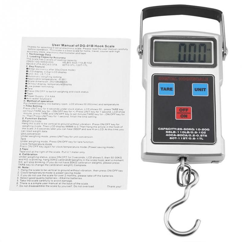1X 50KG Digital Scale Portable Electronic LCD Digital Weight Scale with Tape Measure Hook Stainless steel Measuring Tools Scales