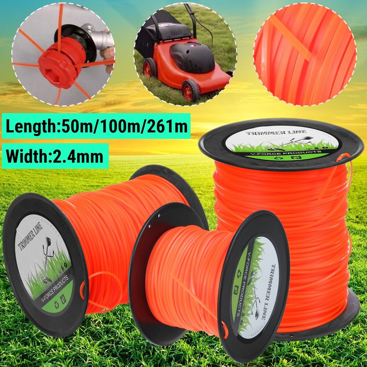 50M/100M/261M Heavy Duty Nylon Square Trimmer Strimmer Line 2.4MM Brushcutter Cord Rope