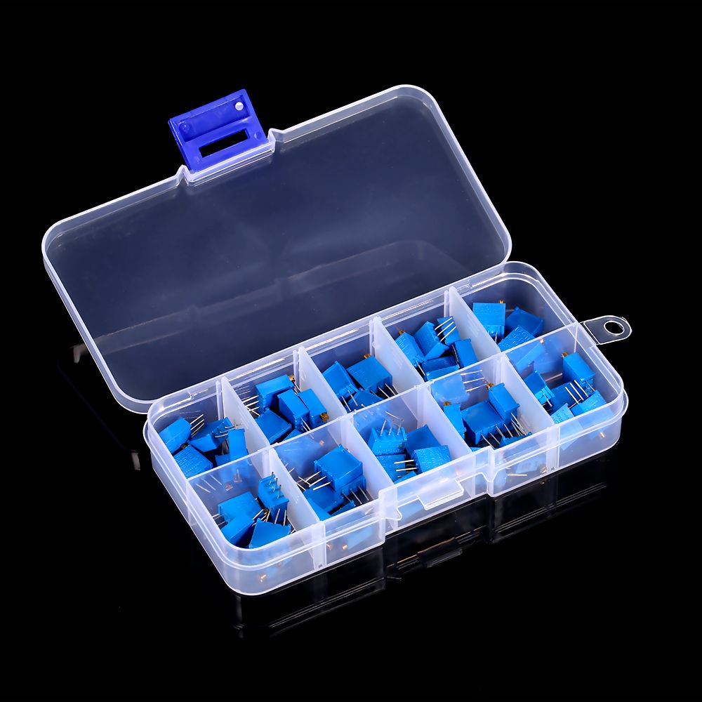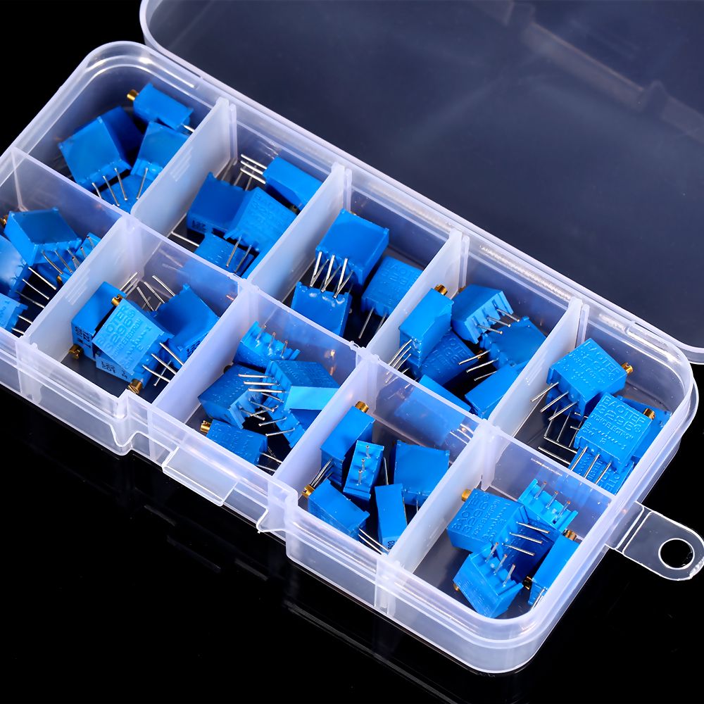 Multiturn trimmer potentiometer kit is designed for adjusting and stabilizing voltage and current.