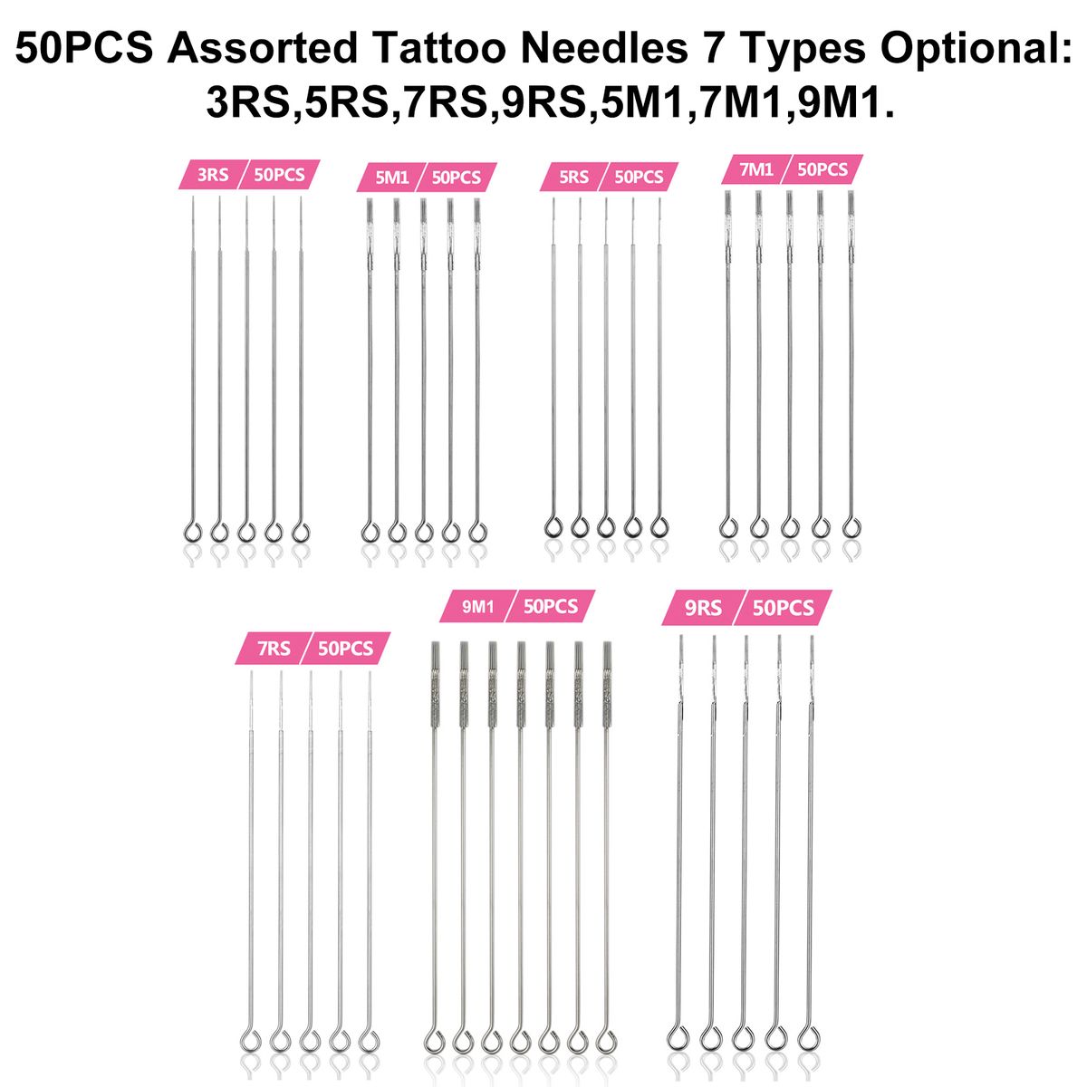 50PCS Assorted Tattoo Needles 7 Types Optional: 3RS,5RS,7RS,9RS,5M1,7M1,9M1.