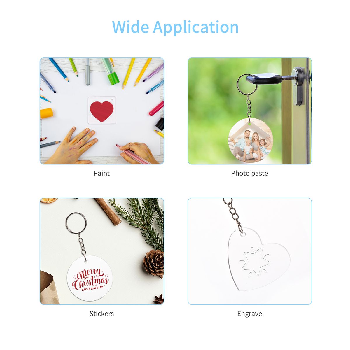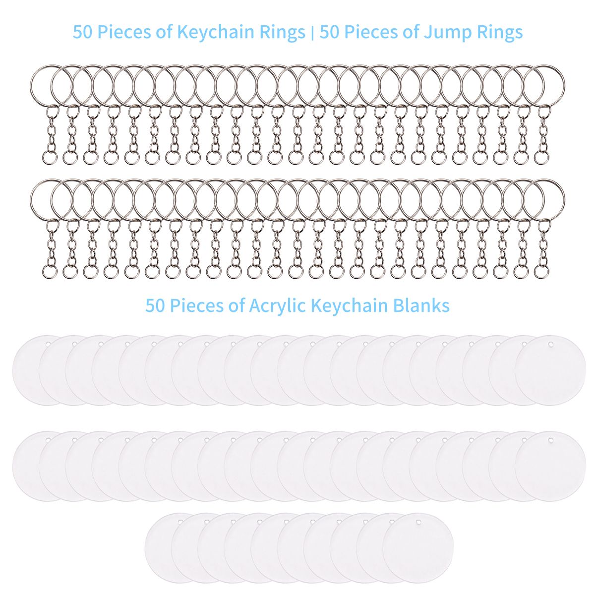 Practical DIY Kits - Come with 50 pieces acrylic circle blanks, 50 pieces key rings with extension chain and 50 pieces jump rings, we provide abundant quantity for you to use and share with friends, just unleash your imagination.