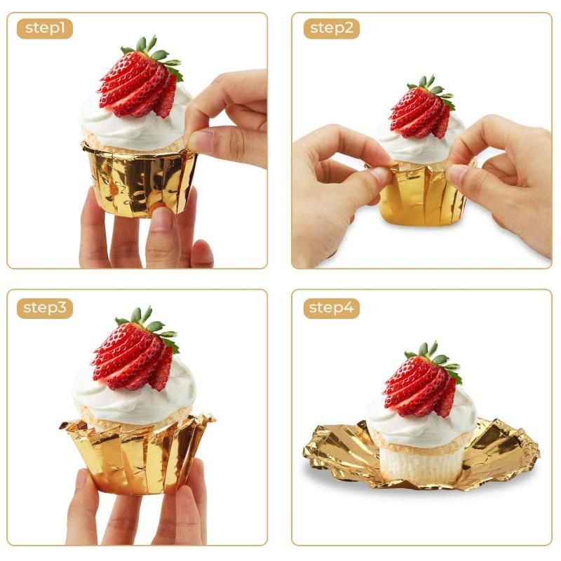 These muffin cups are made of high-quality aluminum foil and are strong and sturdy Put in the oven and bake directly No need for baking trays