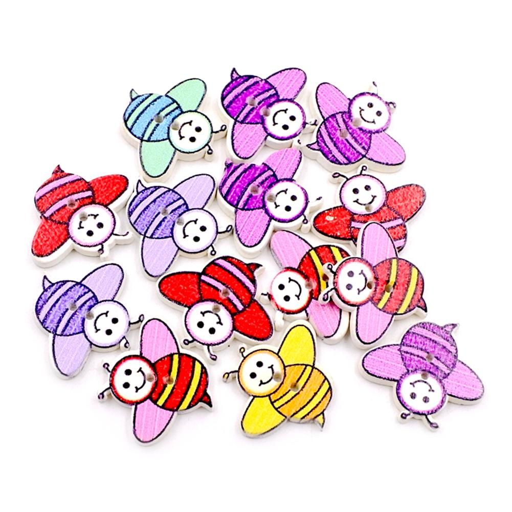 Colorful bee buttons are funny and cute.