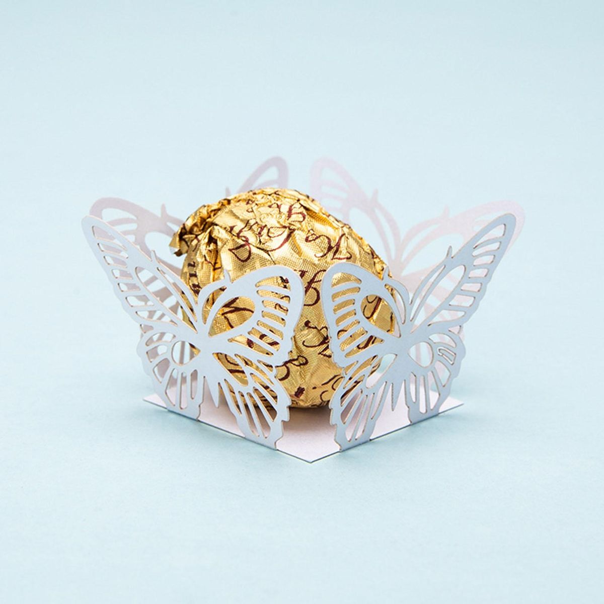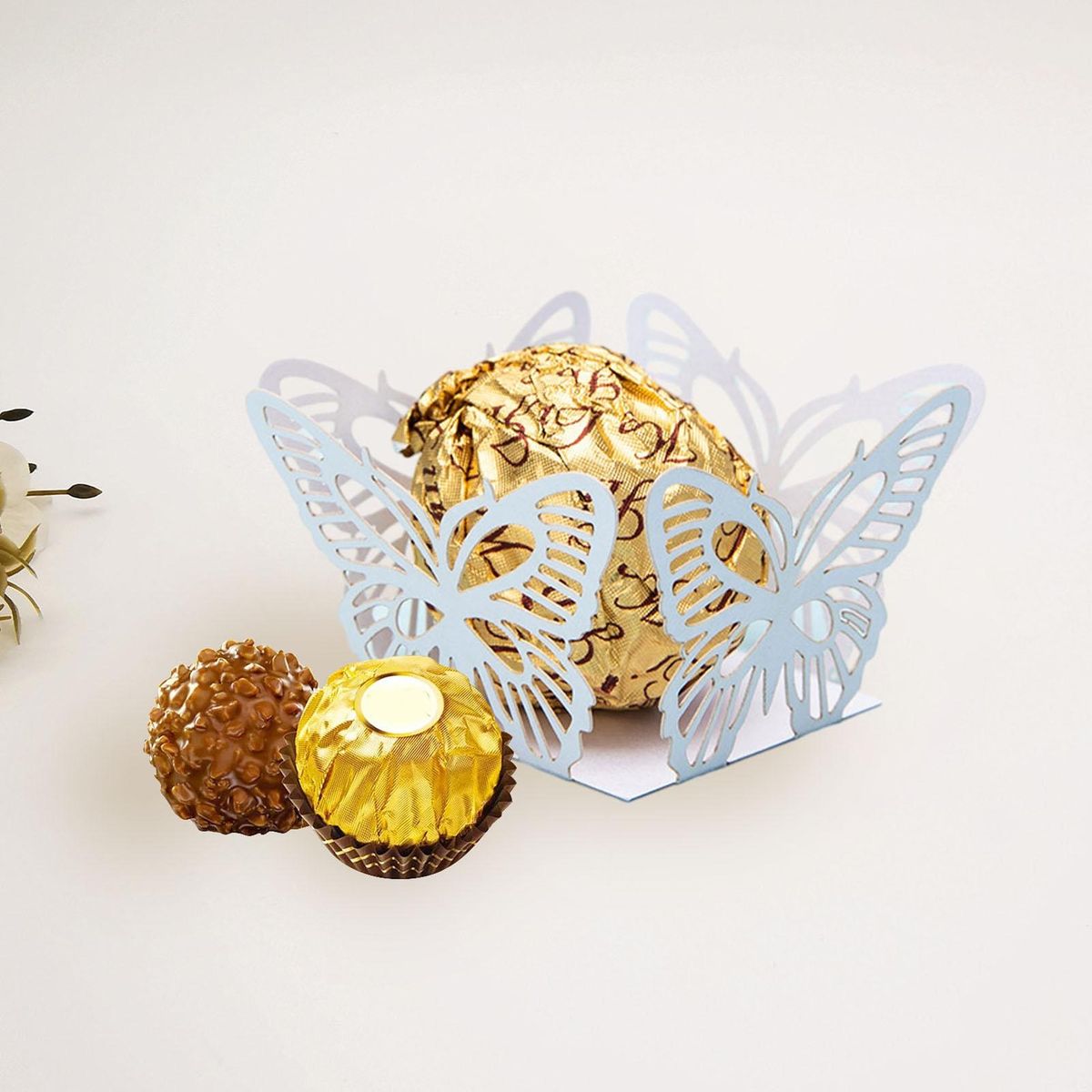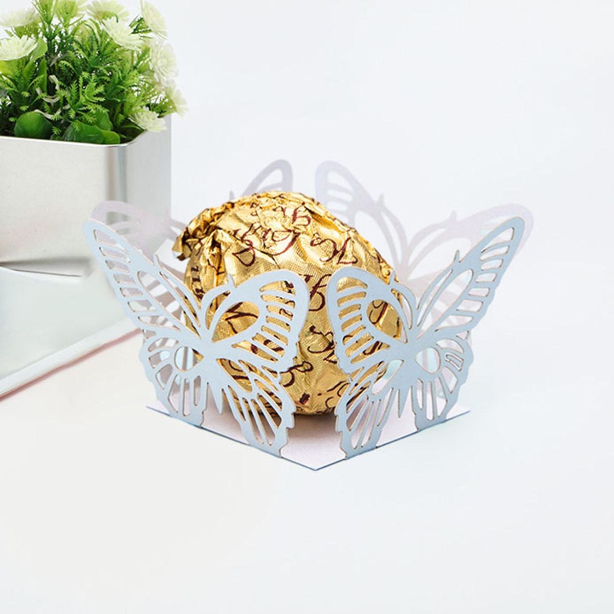 A candy box is designed with beautiful hollowed-out butterfly patterns and exquisite workmanship. It is waterproof, oil-proof, convenient to use and long in service life.
