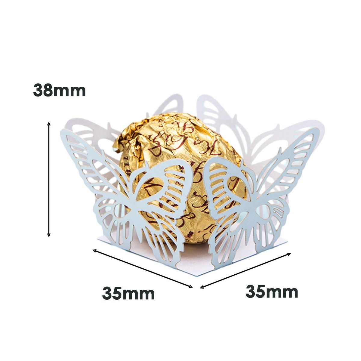 A candy box is designed with beautiful hollowed-out butterfly patterns and exquisite workmanship. It is waterproof, oil-proof, convenient to use and long in service life.