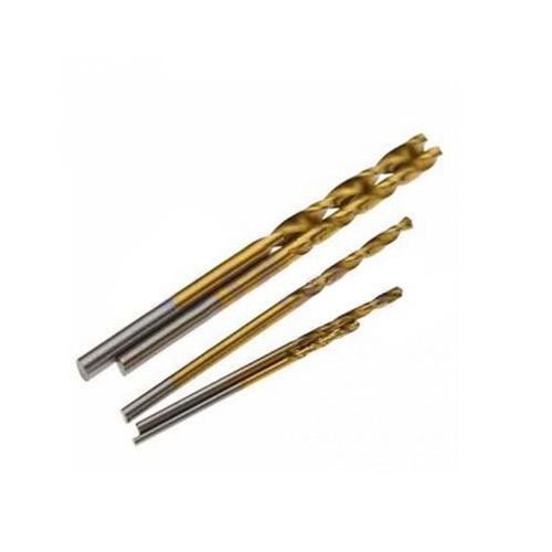 Twist drill bit, according to the spiral principle,specially designed chip flutes are smoother when used in wood, soft metal and brick drillingSpecification:Drill Bit Size: 1.5-6.5mmLength: 5.5-11cmColour: GoldMaterial: High Speed SteelFinish: Titanium Coated