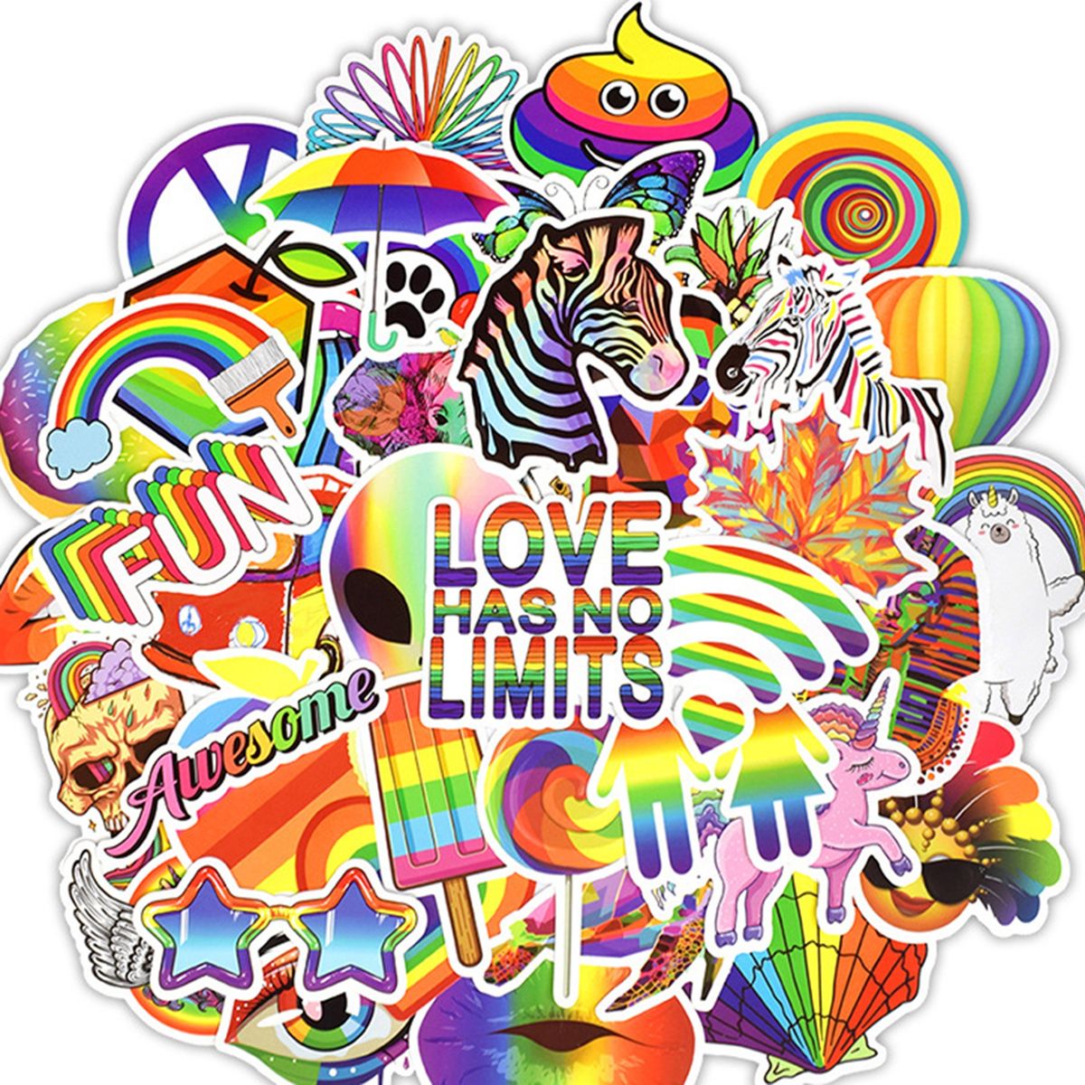 Availability to you is decorative stickers due to its clear printing, full of color; and it expresses the idea that love has no limits, using the rainbow series design.