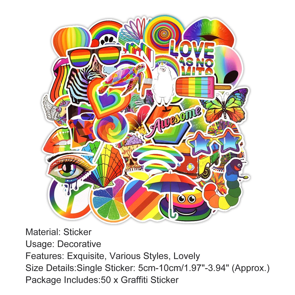 What it can offer you is decorative stickers due to its clear printing, full of color; and it expresses the idea that love has no limits, using the rainbow series design.