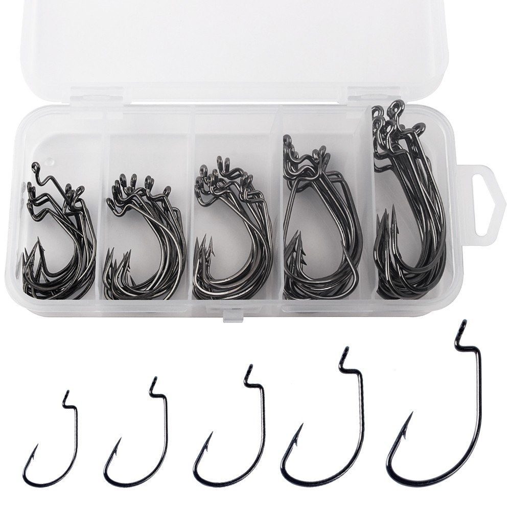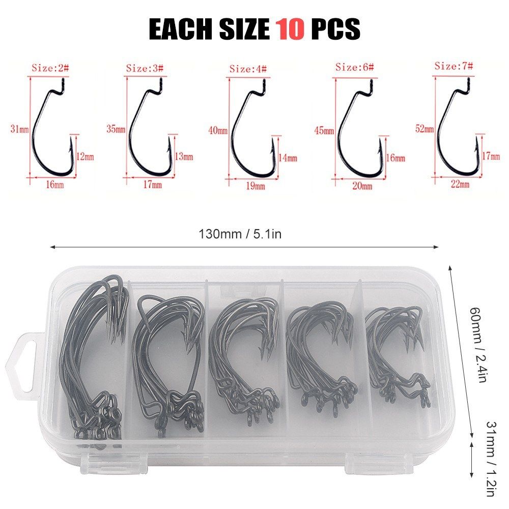 50pcs fishing hooks in 5 sizes.
