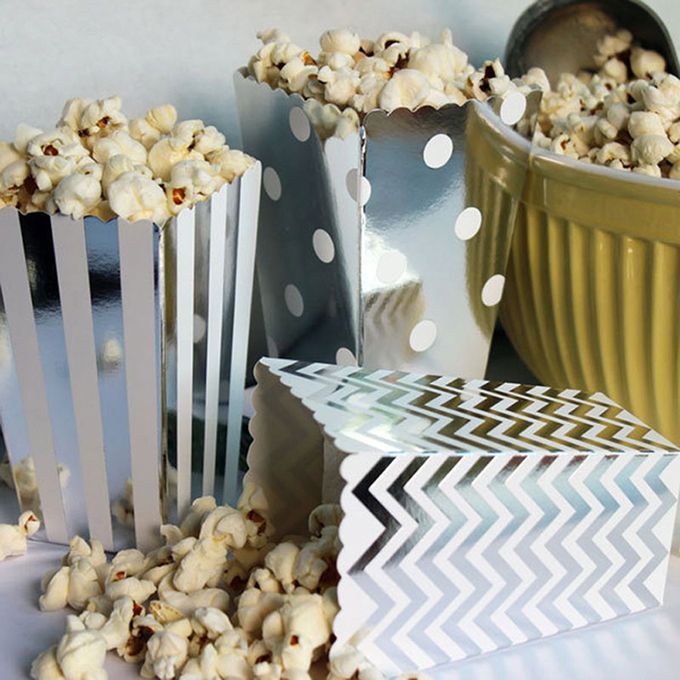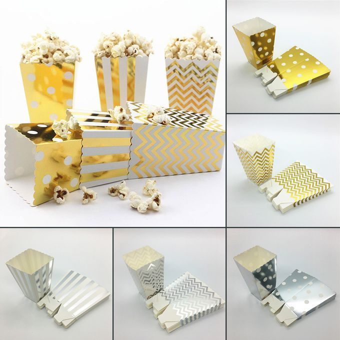 50PCS Popcorn Paper Box Favor Bags Wedding Birthday Movie Party Tableware Gold Silver