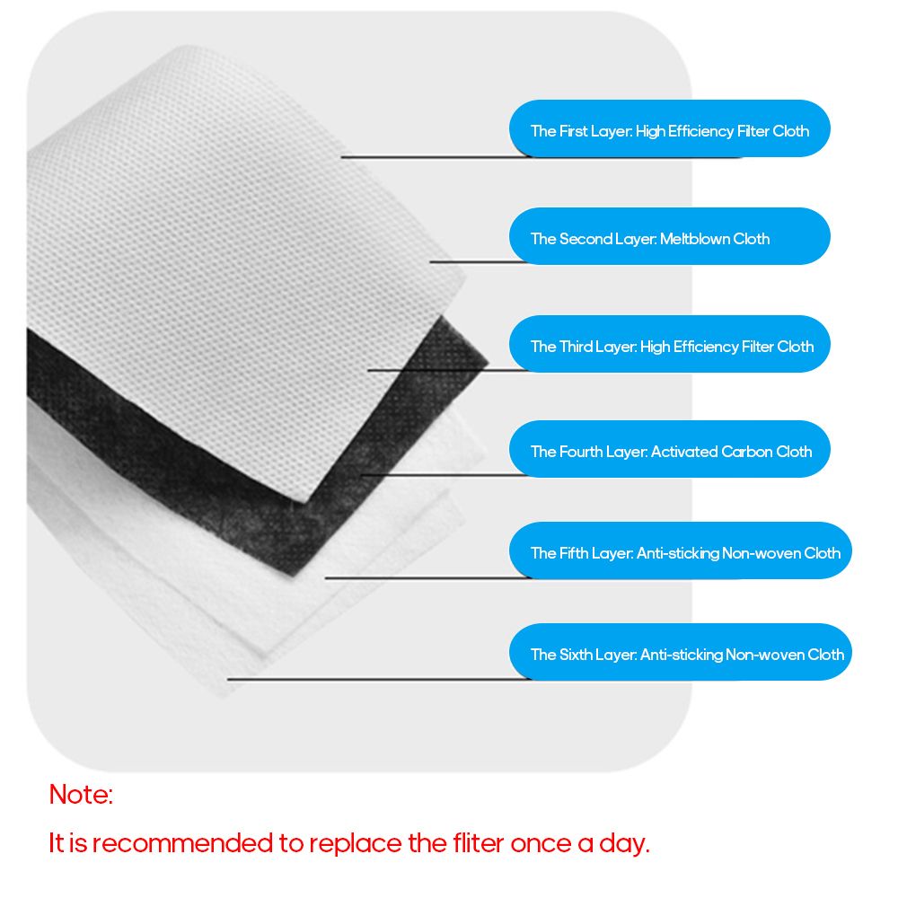 6 layers of material, the pad can effectively filter dust and other harmful substances.