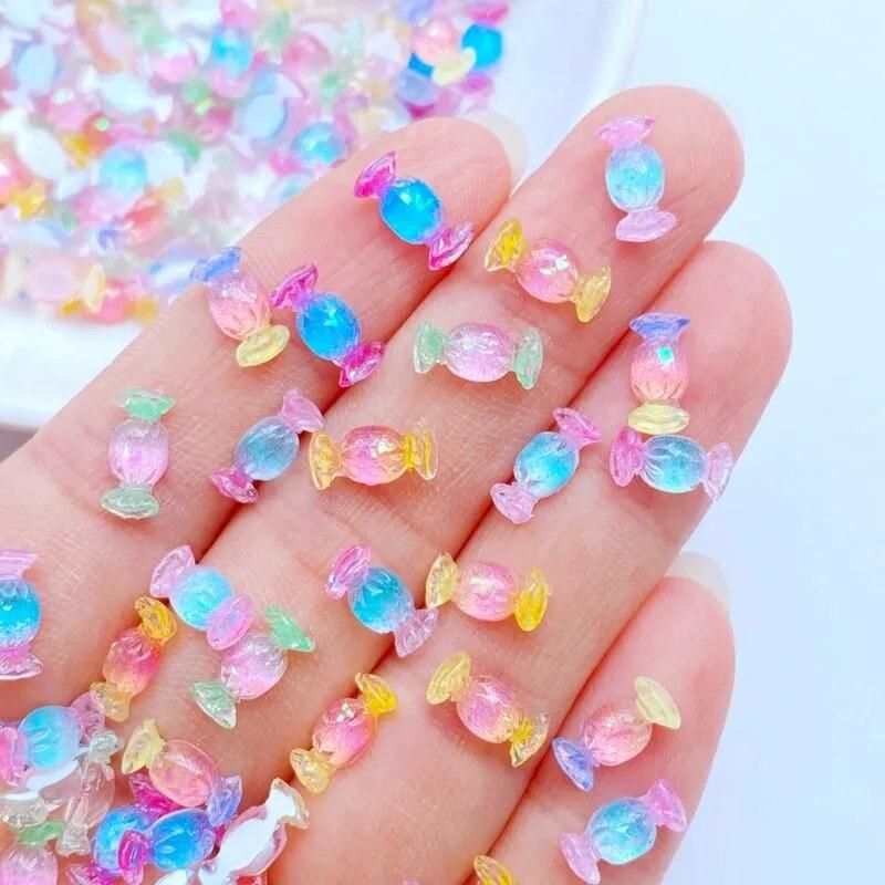 Buy 50Pcs New Cute Mini 4*10mm Shiny Candy Resin Figurine Crafts Flatback Ornament Jewelry Making Hairwear Manicure Accessories in Nigeria