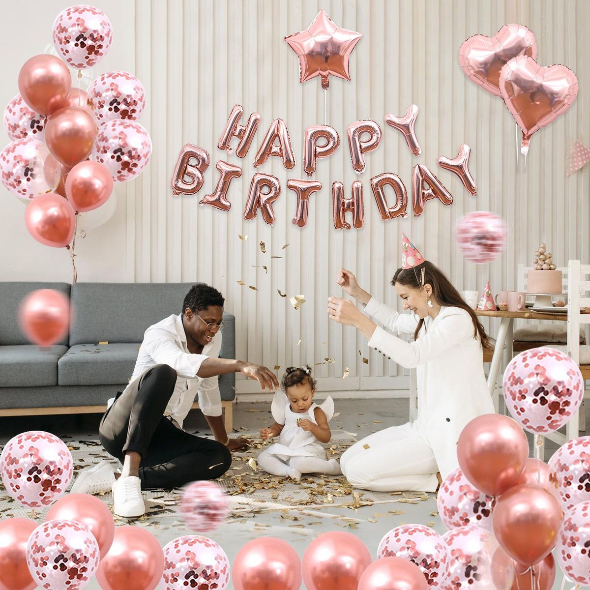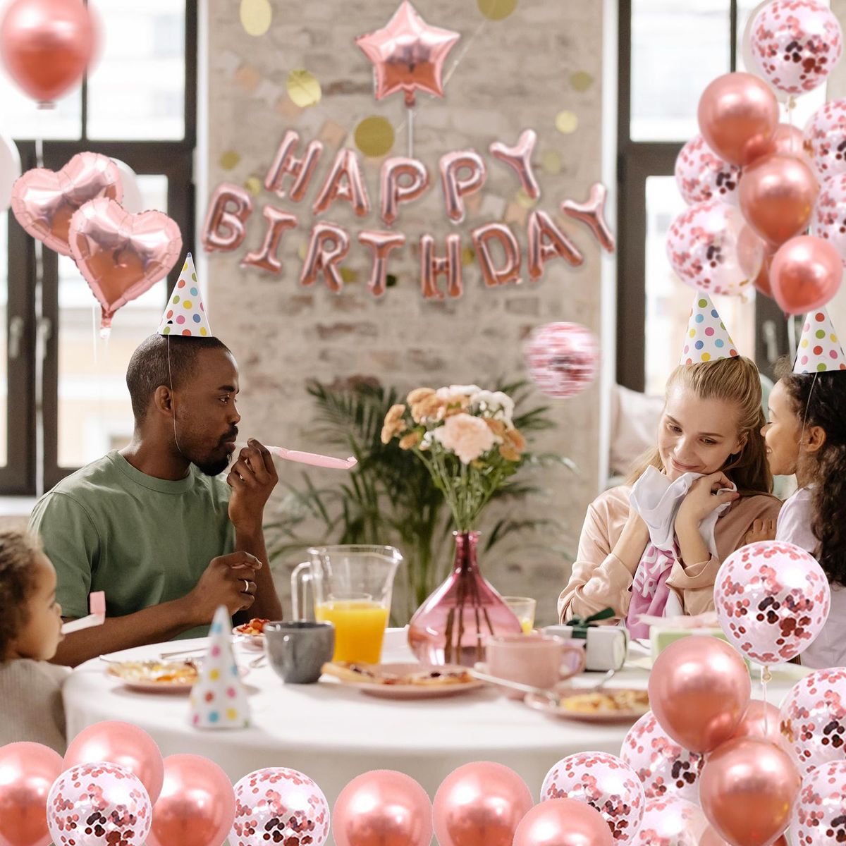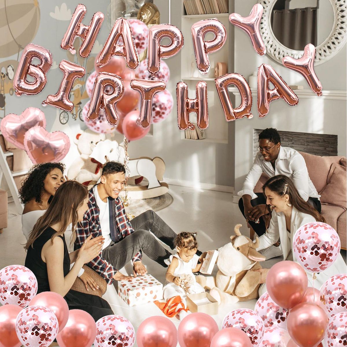 Buy 50PCS Rose Gold Birthday Party Decorations Set Boys Girls Women Birthday Party Supplies Happy Birthday Sequin Heart Balloons for Baby Birthday Party Decorations in Nigeria