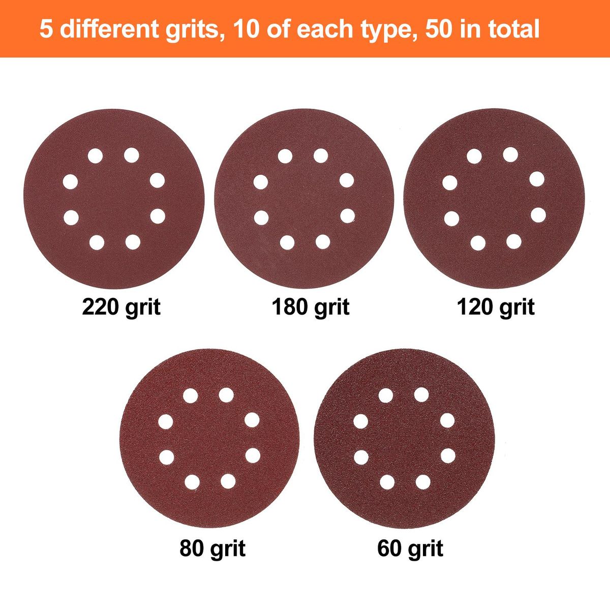 Buy 50Pcs Sanding Discs 5 Inch 125mm 8 Holes 220/180/120/80/60 Grit Sandpaper for Random Orbital Sander in Nigeria