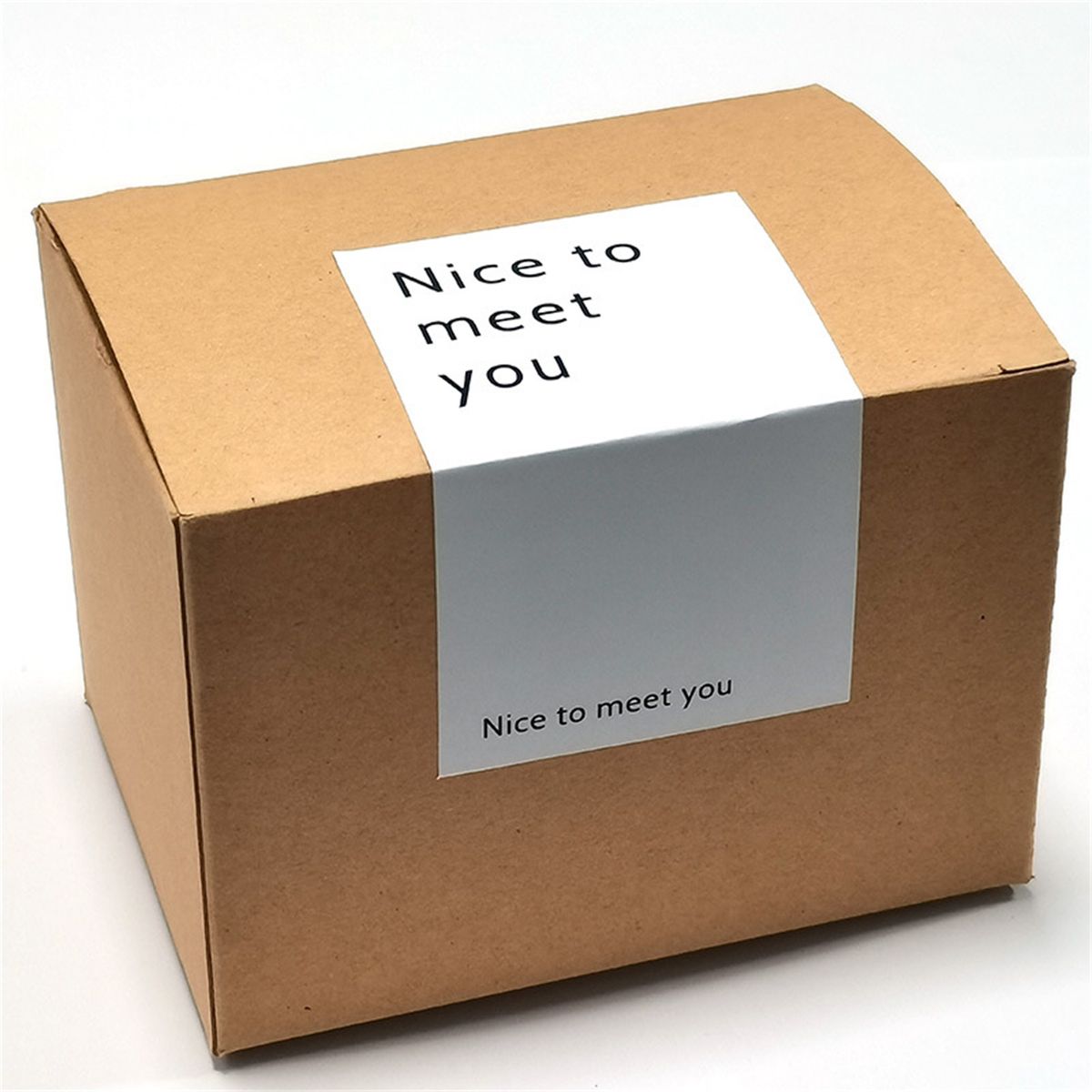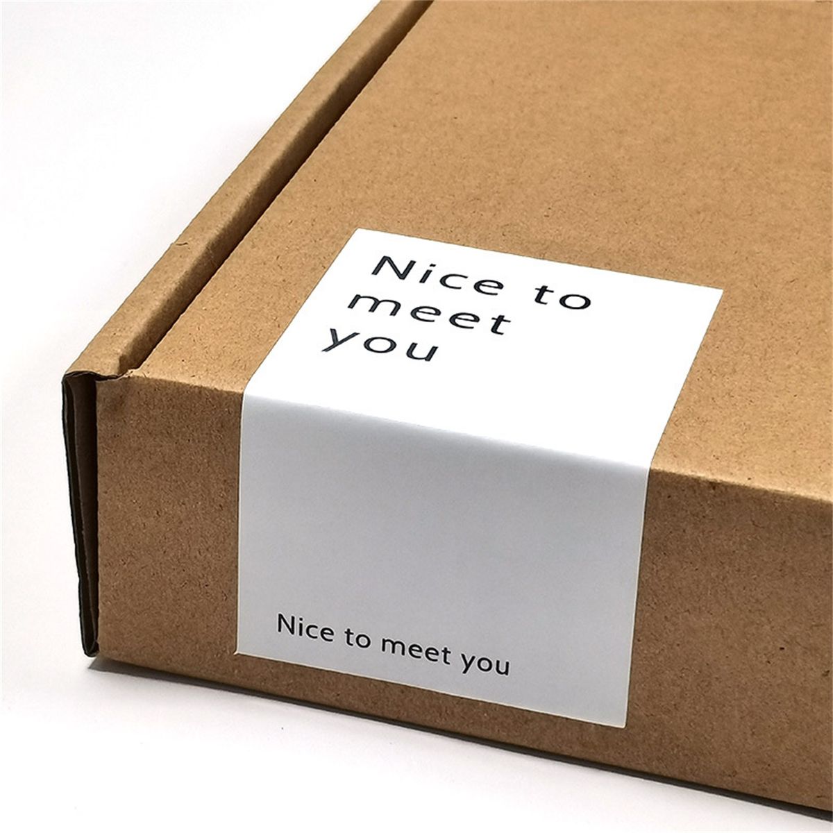 If you want to convey your happiness in a fun and cheerful way for packaging, the sealing sticker with letters nice to meet you would be nice.
