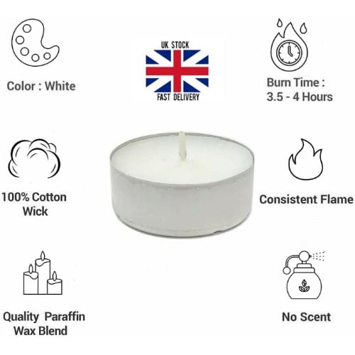 Buy 50pcs White Unscented Wax Tea Lights Candles With 4 Hour Burn Time- 3-23g in Nigeria