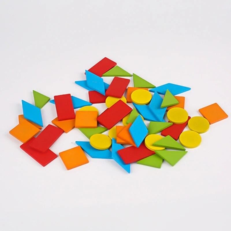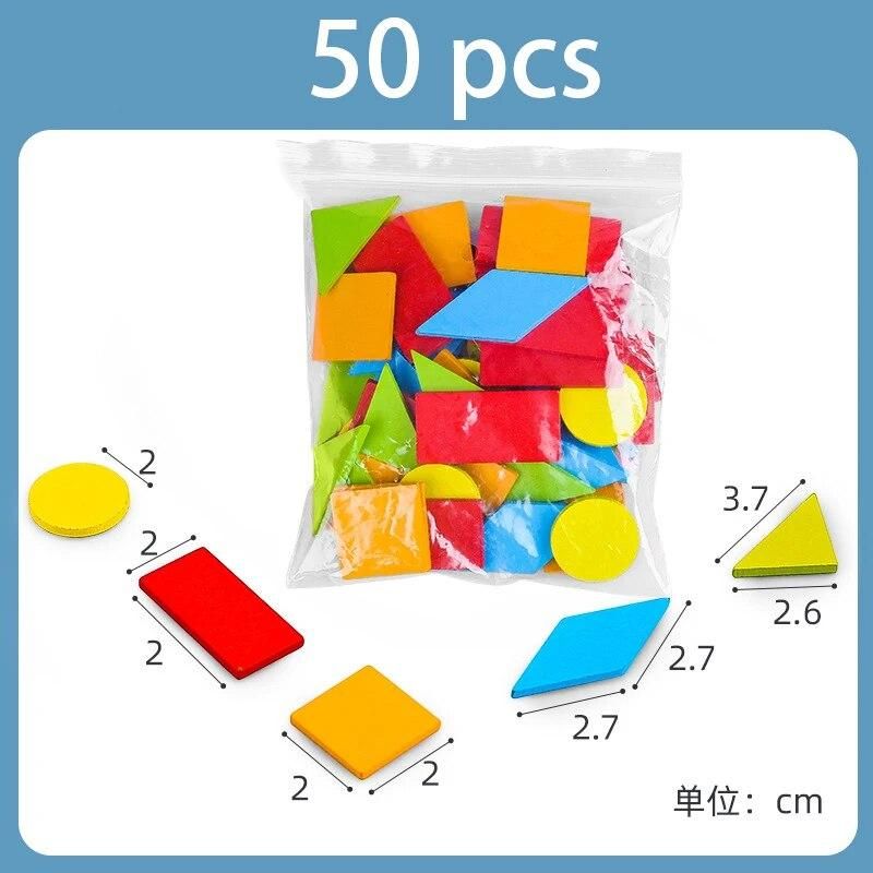 Buy 50pcs Wooden Geometric Shapes Blocks Tangram Puzzles for Kids Kindergarten Classic Educational Montessori Tangram Math Toys in Nigeria