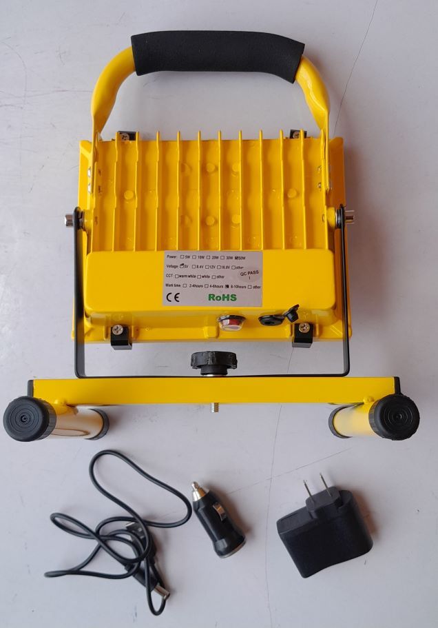 This is 50W LED Rechargeable Flood Light and is specifically designed for lighting emergency. It is a portable lighting device which can be mobile or mounted in a specific location to illuminate the environment. This