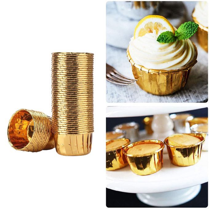 Dual-use Function: Aluminum foil paper baking cups are both cake baking molds and baking tray, as it can be place in the oven and bake directly.