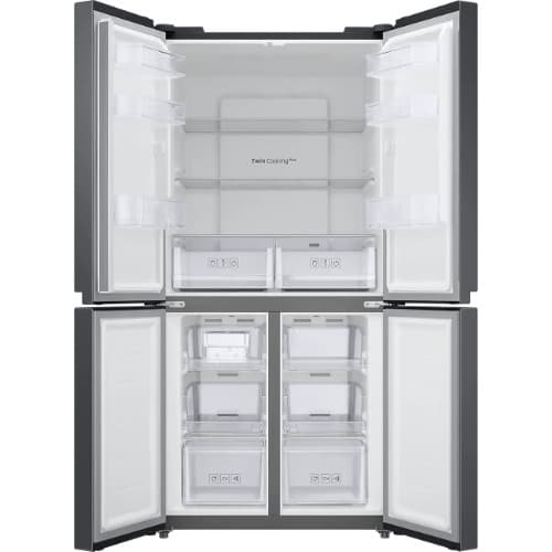Experience innovation and elegance with the Samsung 511 Liters Twin Cooling Plus 4-Door Refrigerator. Designed with a sleek Gentle Black Matte finish, this refrigerator offers exceptional cooling performance, energy efficiency, and an organized layout to elevate your kitchen.