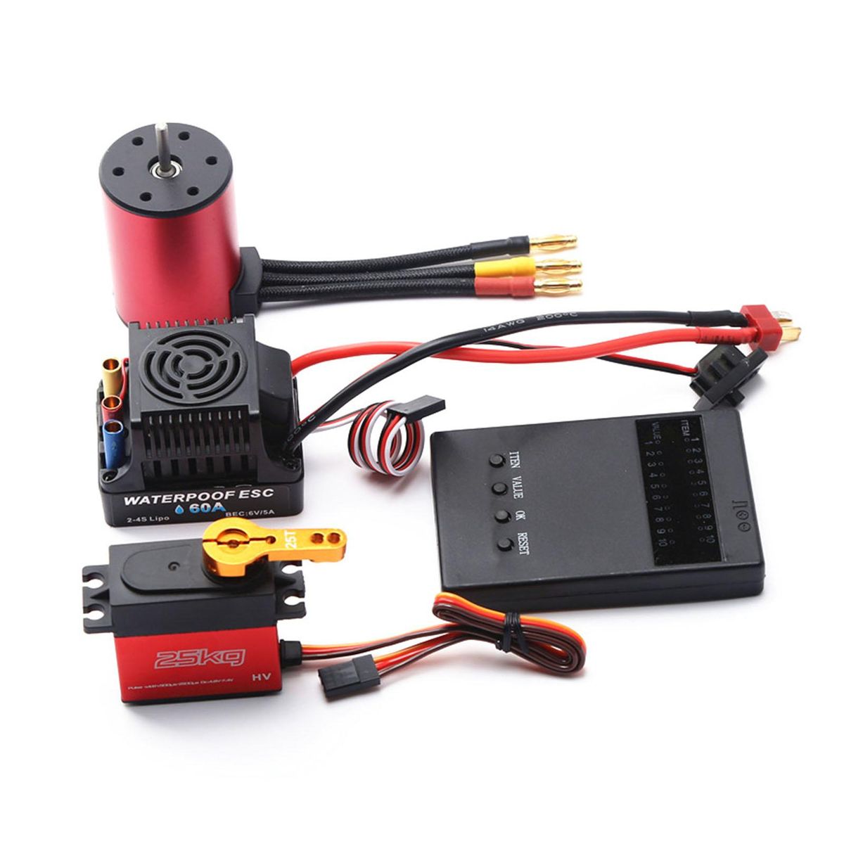 Buy 5200KV Brushless Motor 3650 Waterproof Motor with 60A Brushless ESC 2-4S Lipo 25KG Digital Servo Programming Card for 1/8 1/10 RC Car in Nigeria