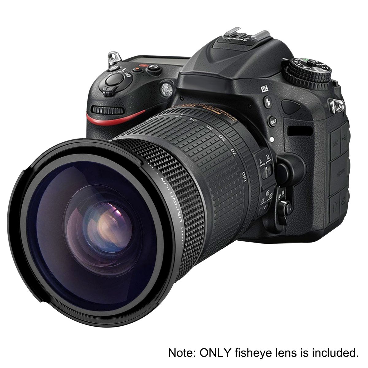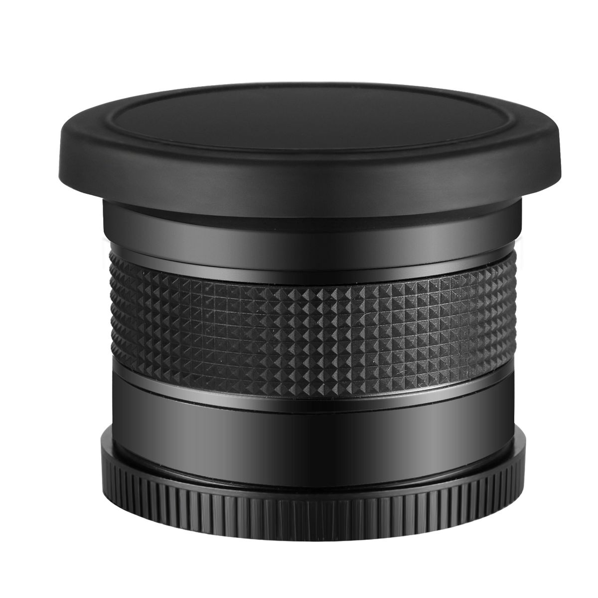 This fisheye lens attaches to cameras, camcorders, and lenses with 52mm filter threads.