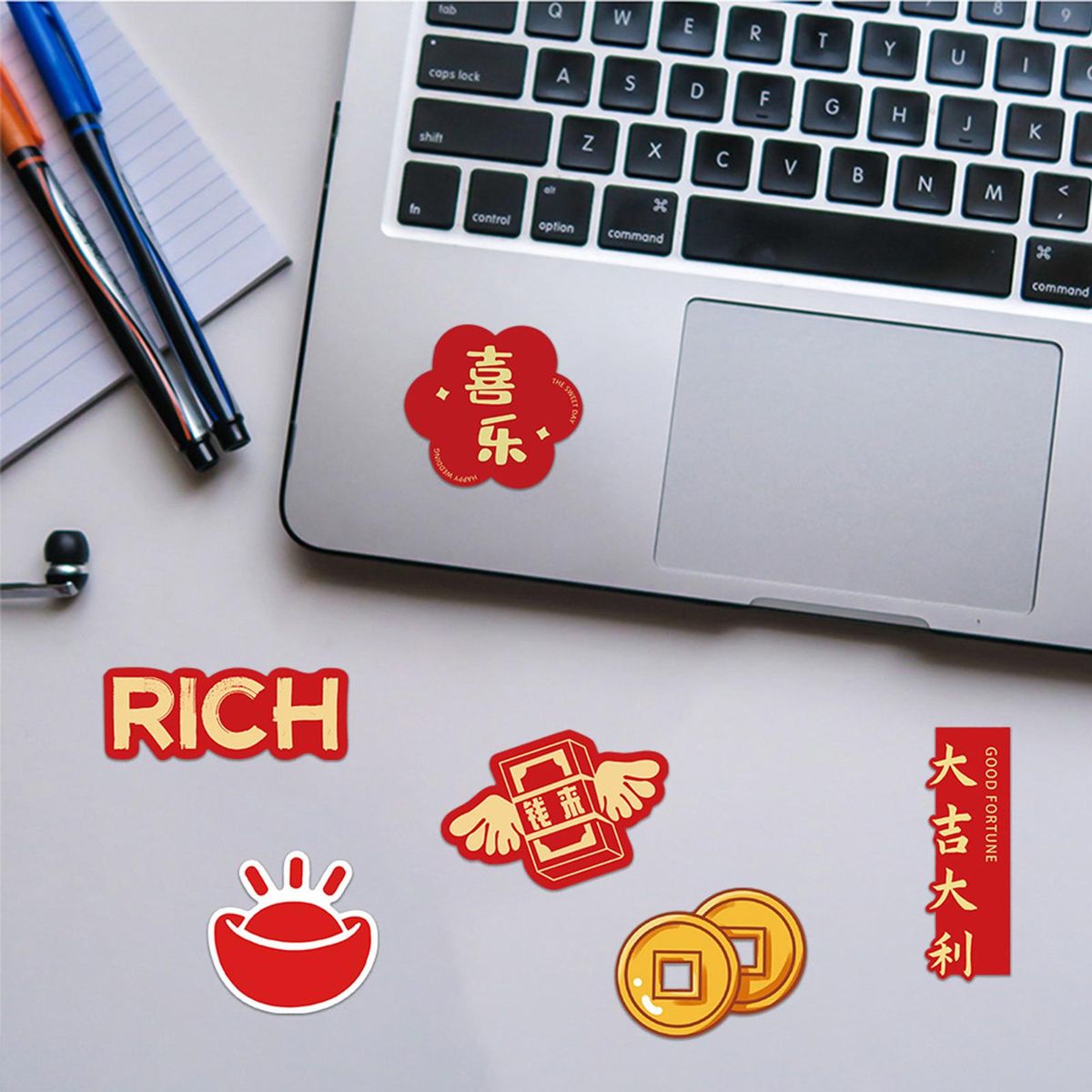 It is these stickers featuring congratulations, good luck and best wishes images with rich patterns and various styles can be affixed to cell phone cases, water bottles, stationery, handbooks, notebooks, headphone cases, school bags, etc. as decoration.