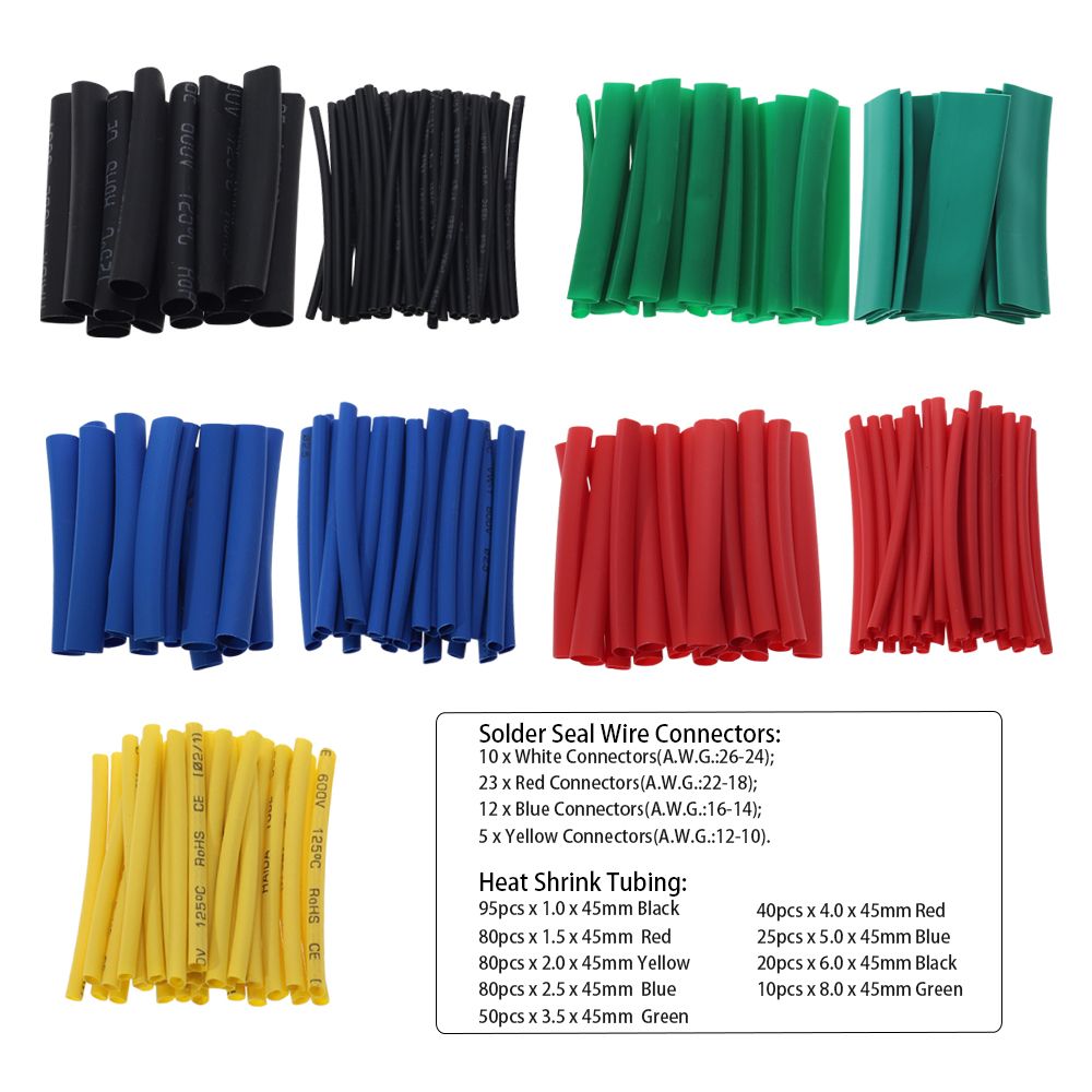 PackageIncludes:480Pcsheatshrinktubingand50Pcssoldersealbuttconnectors