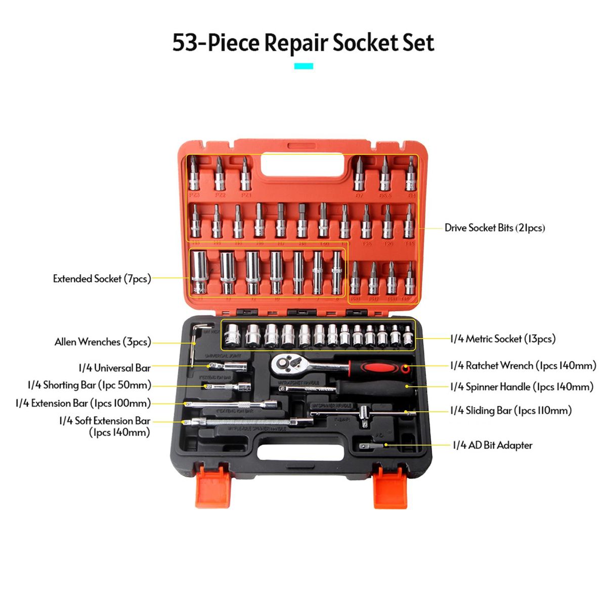 Buy 53pcs Ratchet Wrench & Socket Tools Set 1/4-inch Drive Screwdriver Repairing Kit Combination Socket Wrench Drive Socket Set with Storage Case for Home Car Automobile Bike Mechanic Projects Repair Household Garage Trunk in Nigeria